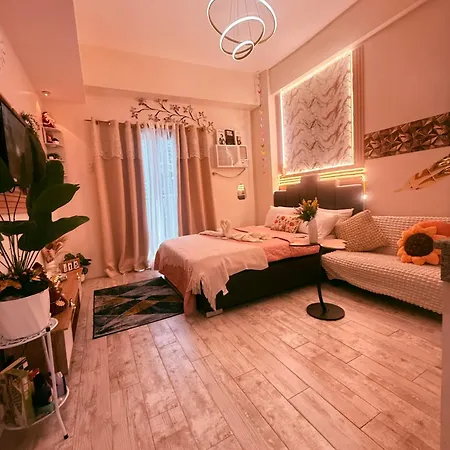 The Fyangz Luxe Staycation Near Anjo World offers rooms with a balcony featuring an air conditioner, along with a flat-screen TV with satellite channels. Guestrooms also include a fridge and a kitchenware. Bathroom comforts include bath sheets and towels, and such essentials as a separate toilet and a shower.
